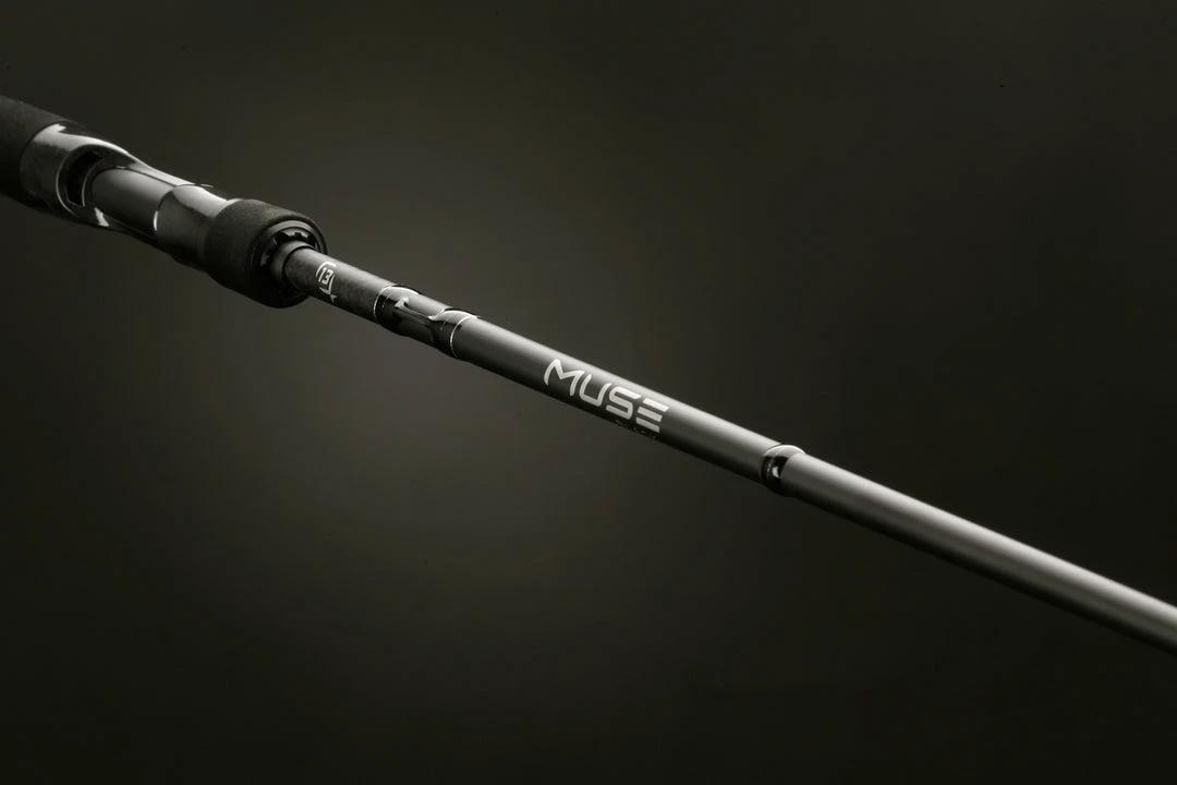 The Muse Black Casting Rod from 13 Fishing perfectly balances form and function. The blank is constructed from a 36-ton Poly-Vector Graphite (PVG36T) and lined with ALPS matte black Zirconia guides with a SIC tip. The Evolve Airfoil Carbon reel seat allows every bite to be felt through the rod blank and right into your fingertips. High-density EVA provides comfort and excellent grip. All of these materials are light-weight so this rod is light in the hands but still exceptionally sensitive and well-balanced. The Muse Black series has a sharp black look with sculpted curves so it looks as amazing as it performs.