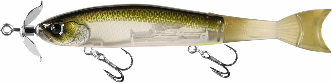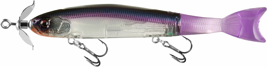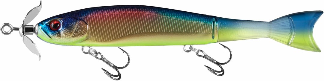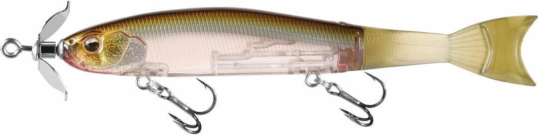 The 13 Fishing Shadow Spin Hybrid Spy Bait – Swimbait is an excellent creation for anglers that love finesse fishing. Taking the applications from that technique and turning them into a spy bait has resulted in this brand new piece of art. You have a custom machined aluminum prop to create the perfect amount of water displacement in the front. The bait’s back end is a slight wedge-tailed paddle that moves through the water like no other spy bait. When you pair each of these unique design traits together, you get a bait that will drive the fish wild and lure them out from their comfortable beds!