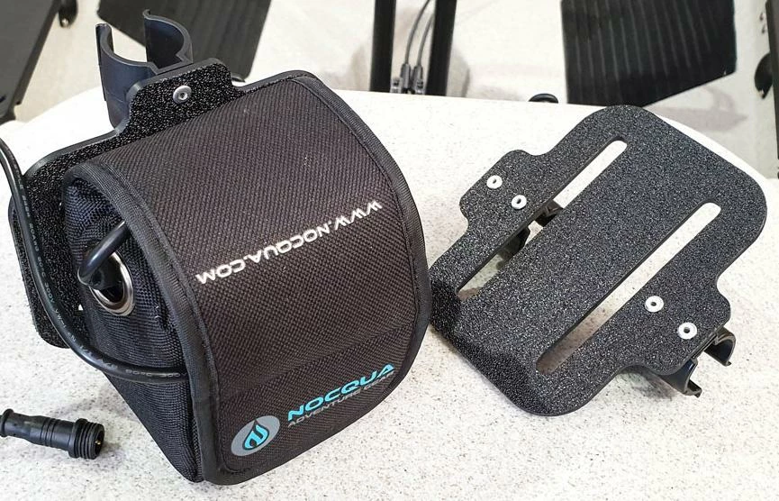 The BerleyPro Mast Mount allows you to mount your Nocqua Battery on any 25 mm shaft for easy storage. Designed specifically for Hobie kayaks, you can see an example in the pictures above of how a battery is easily attached to the sailing mast mount inside the hull of a Pro Angler 14. Installation is easy! Just attach slip the battery’s velcro strap through the two slots on the bracket and attach the strap to the existing velcro. Next, push the mounting clips onto any 25 mm – 35 mm shaft (1″-1 3/5″) and you’re done! The mounting bracket is made with extra-wide sides to provide you with easy removal of the battery and bracket assembly off the shaft that it’s mounted to.