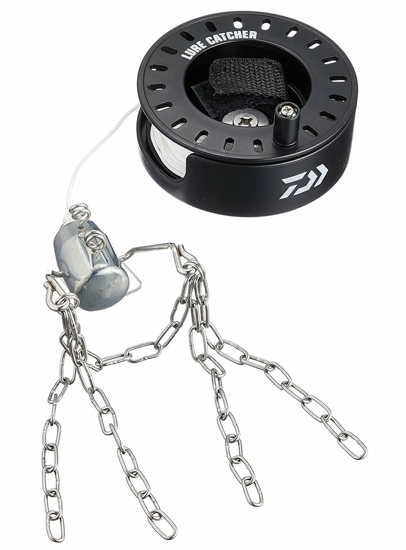 Have you ever opened a brand new crankbait and got it snagged on the first cast? It’s infuriating! Now you can have peace of mind with the Daiwa Lure Catcher / Retriever! Work this retriever onto your line and let it slide down to your lure. Its chains will flail around and grab the hooks, and then you can pull the heavy-duty cord to pop your lure free. No more losing your favorite, lucky, or costly lures! This lure retriever also features a convenient storage reel for storing the heavy pull cord to keep it out of the way and untangled. The Daiwa Lure Catcher / Lure Retriever is a great fishing tool on any boat!