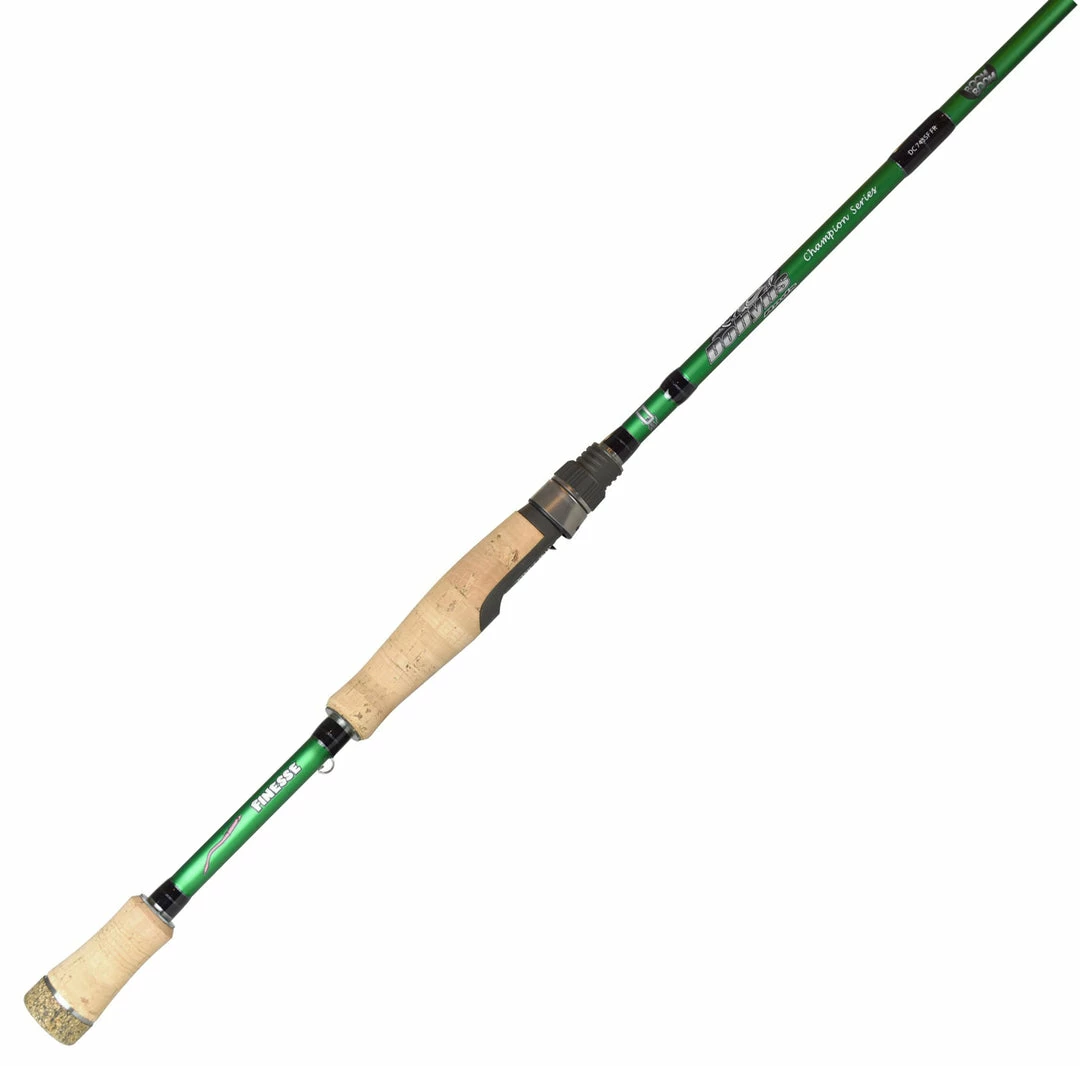 The Dobyns Fred Roumbanis Series Spinning Rod was created by professional angler Fred “Boom Boom” Roumbanis. Fred has perfectly curated this lineup to incorporate rods for his go-to, everyday favorite techniques. This spinning rod is perfect for anglers that love to fish shaky heads, dropshot, and nail weights. Designed using the Champion XP Series proprietary high-modulus graphite blank, you can expect extreme sensitivity and durability without the heavyweight. This rod has a Fuji graphite reel seat and Fuji Alconite guides to provide the sleekest and smoothest route for your line. In its perfectly balanced design, you can hold onto the AA-Portugal cork handle with comfort while you are reeling in that monster fish. Fred’s final touch on this lineup of rods was a kevlar wrapping in his signature green color, ensuring you will be noticed on the water!
