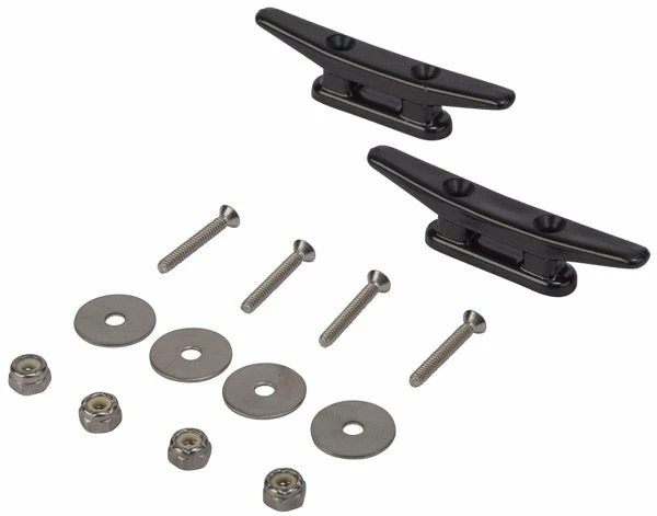 Kit Includes: (2) 4″ Open Base Cleats, (4) 8-32 x 1-1/4″ OH, (4) 8-32 Nyloc Nuts, and (4) #8 Fender Washers