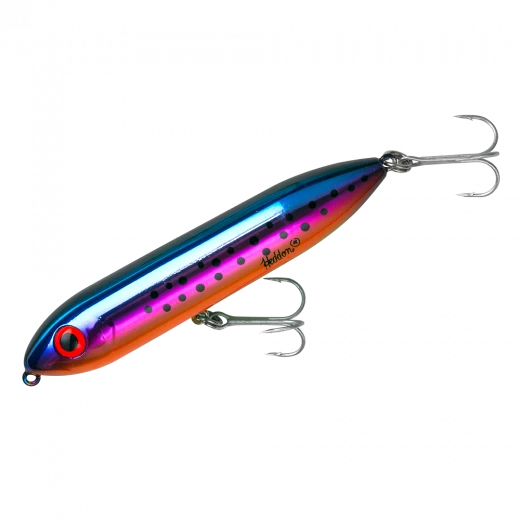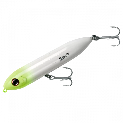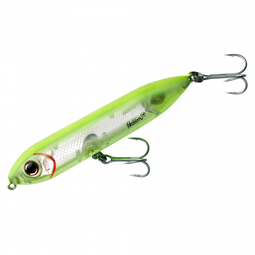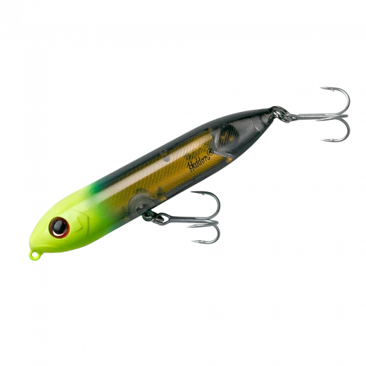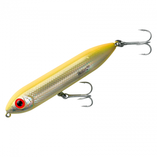 Don’t be fooled by the name! As part of the Super Spook family, the Heddon Super Spook Jr may be a downsized bait version, but there is nothing small about its fishing-catching performances! This seductive hard bait is equipped with an internal rattle to drive the fish into a feeding frenzy! The strong hardware, durable body construction and highly productive decorating schemes puts this bait on the dinner menu. Trophy bass, giant redfish, gator trout, massive stripers, pike, and even muskies have an appetite for this bait! This tough Super Spook Jr. comes with two super-sharp saltwater grade hooks ready to hold on tight through the entire battle.