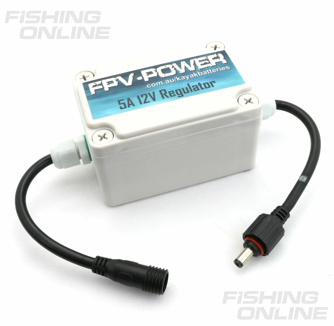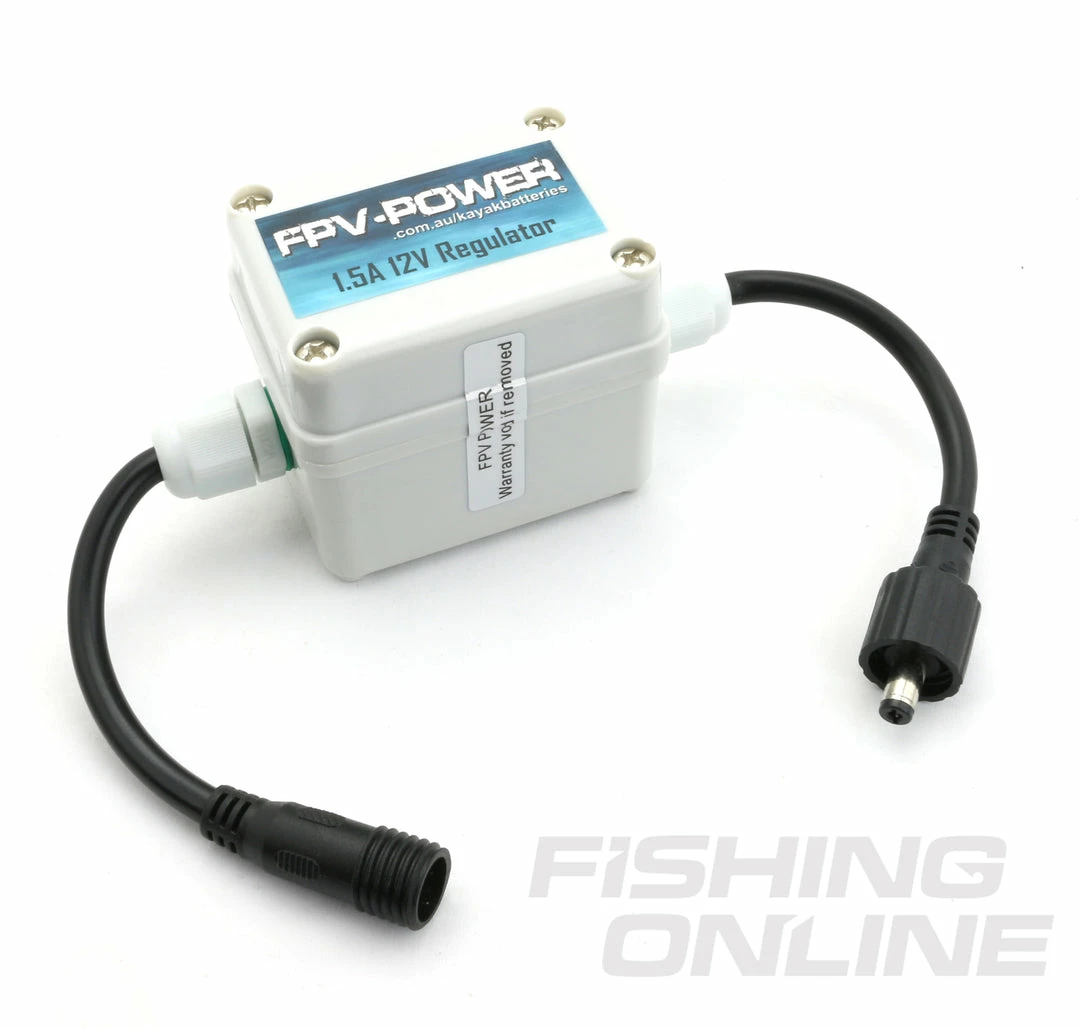 The FPV-Power Power Regulator 12V allows your battery to deliver a steady voltage throughout the entire day. Certain electronics, mainly fishfinders, have a minimum of 11V to run. Once the battery source dips below that minimum, the fishfinder will shut off. With a 12V battery, the voltage levels will naturally drop off as the charge is used. The issue here is that once your battery drops below 11V, some electronics will shut off, but there is still plenty of charge left in the battery. Using a regulator eliminates that problem, as it will allow you to hold a steady voltage through the entire charge of the battery. Allowing your battery to continuously run at 12V throughout the charge gives you the ability to run your electronics much longer. The smaller 1.5A version is sufficient for most fishfinders, but make sure you check the specs for your particular fishfinder to see the maximum amps allowed. If you do need a larger version, the 5A is available as well.