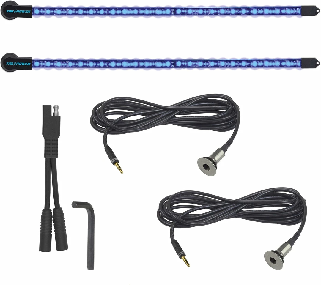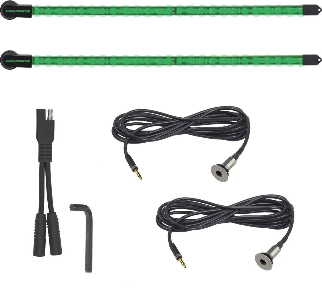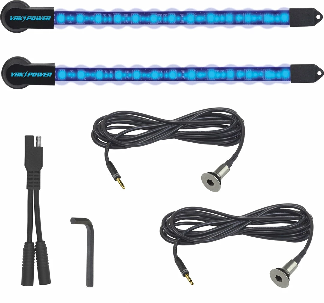 The Yak-Power 2 Piece Kayak LED Light Kit is designed for maximum performance, ease of installation, and reliability. The LED light strips feature Super Bright LEDs that are fully encapsulated and compression-molded with a silicone encased connector plug that plugs directly into the Yak-Power Through Hull connector. All wiring is complete with Yak-Power plug-and-play SAE connectors for easy integration into any Yak-Power system.
