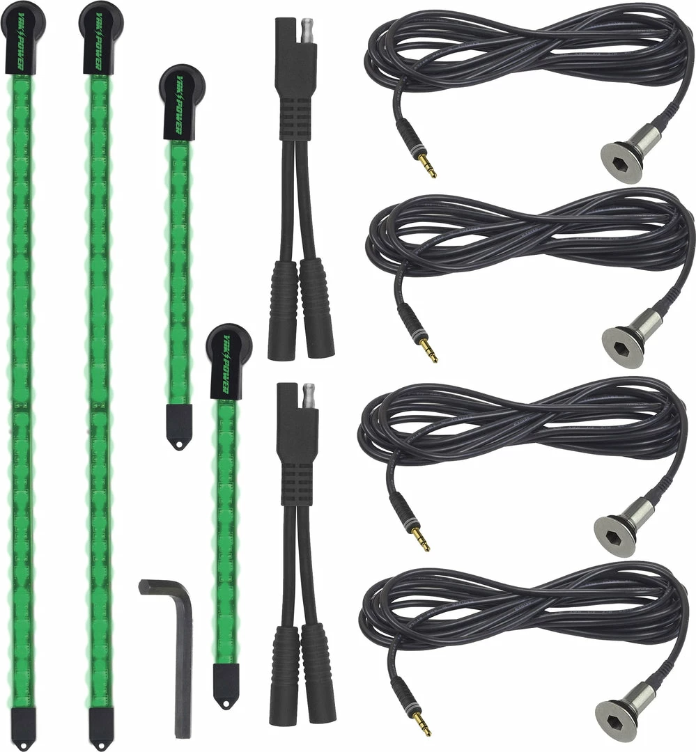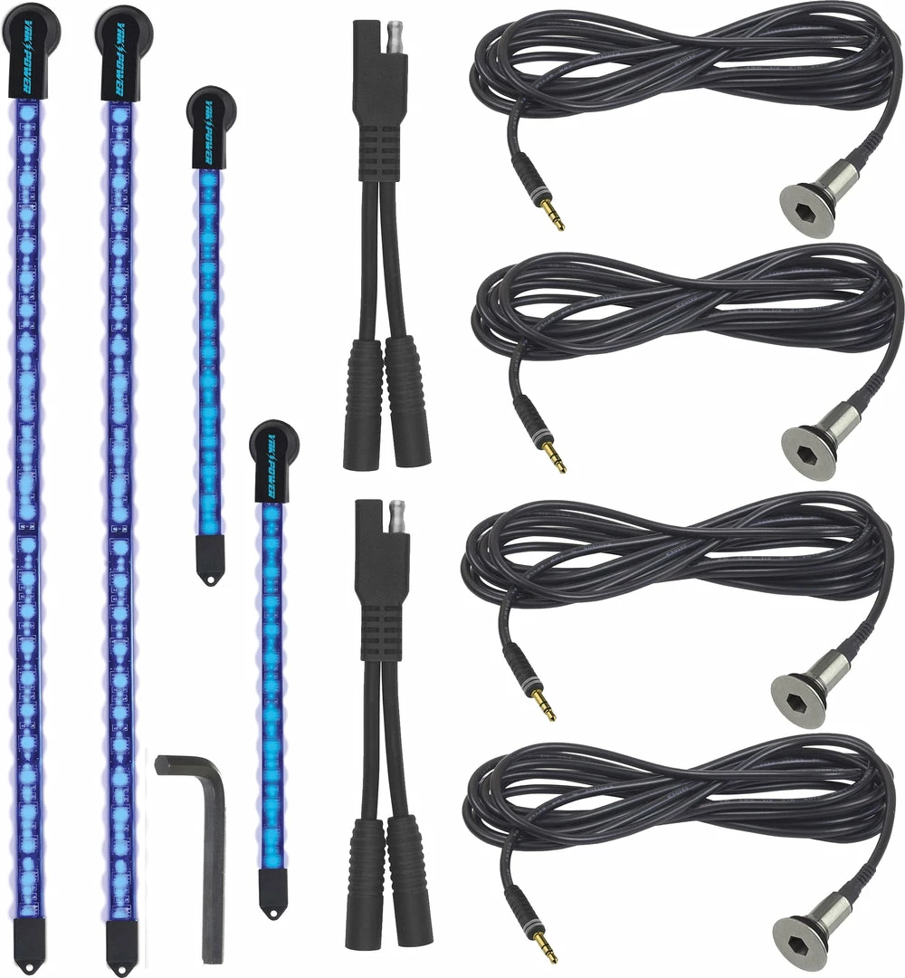 The Yak-Power Complete Kayak LED Light Kit contains everything you need to light up your kayak! It is designed for maximum performance, ease of installation, and reliability. The LED light strips feature Super Bright LEDs that are fully encapsulated and compression-molded with a silicone encased connector plug that plugs directly into the Yak-Power Through Hull connector. All wiring is complete with Yak-Power plug-and-play SAE connectors for easy integration into any Yak-Power system.