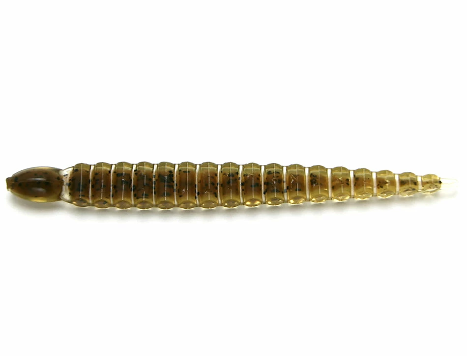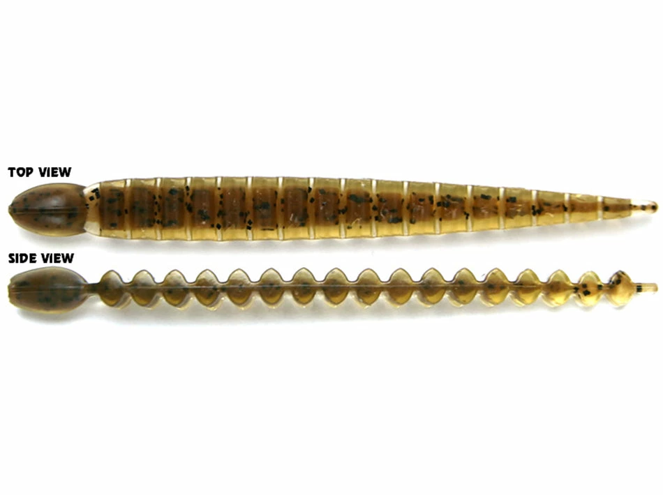 The Keitech Custom Leech is an excellent leech imitation style bait with amazing, life-like action. The segmented body and specific plastic densities allow this bait to maintain its horizontal position and balance while putting off incredible action. This bait will really excel when rigged on a drop shot. Rig it flat to mimic a leech or turn the Custom Leech on its side and it mimics a small baitfish! The 2-Tone color process gives the Custom Leech some great color options to choose from. The perfect bait for a variety of finesse presentations that is sure to hook loads of fish! 10 baits per blister pack!
