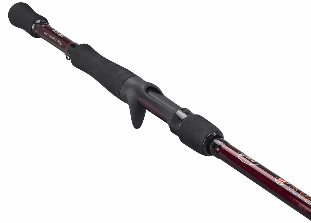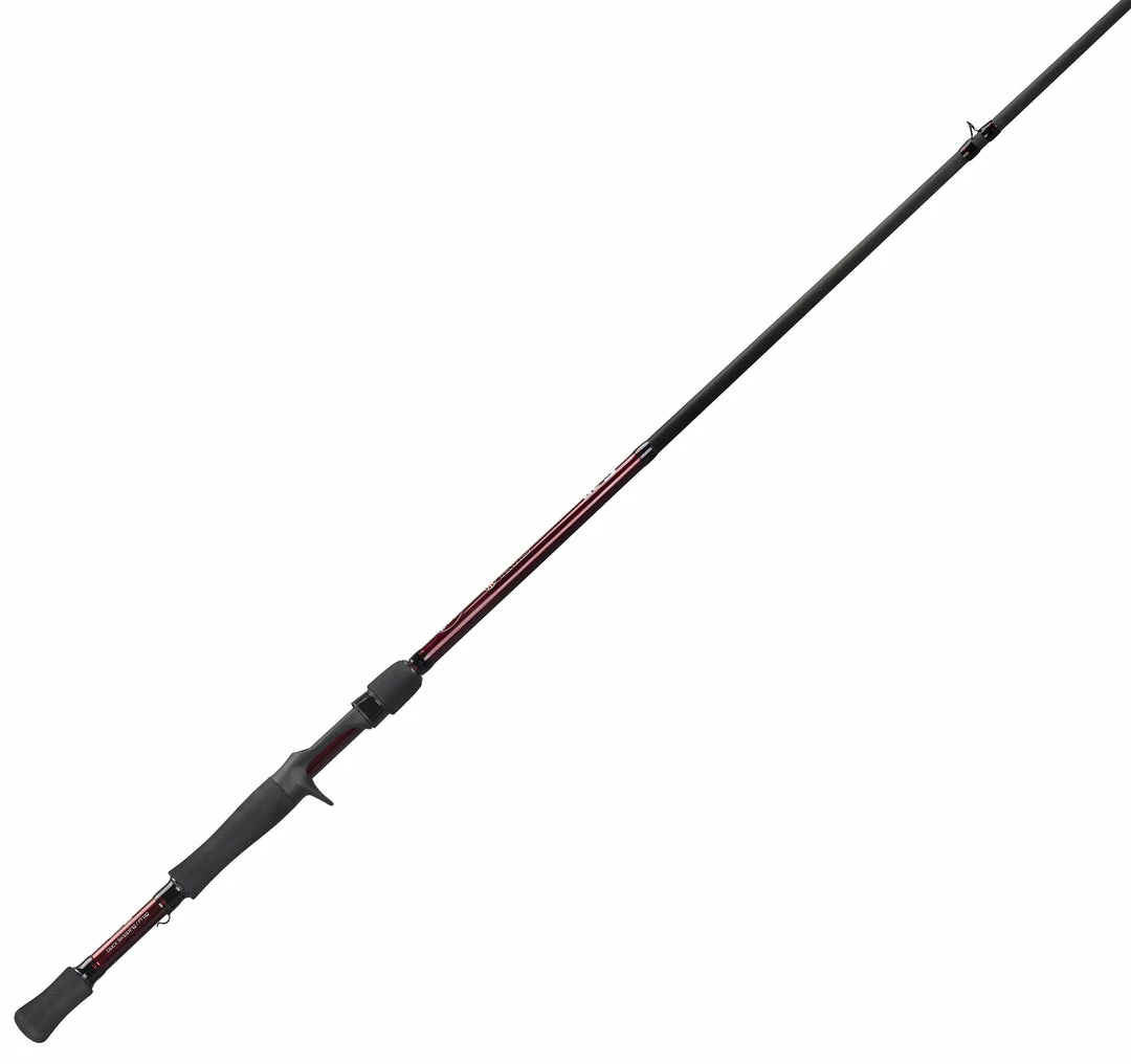 The Lew’s KVD Series Composite Casting Rods feature premium IM8 graphite blanks, split-grip EVA handles, brand new Lew’s® proprietary Full Contact reel seats with increased blank contact, rear locking reel seat on spinning models for improved comfort, stainless steel guides with aluminum oxide inserts with strengthened stainless steel with zirconia insert tip-top for optimal durability for use with braided lines and a patented “No Foul” hook keeper. Rods are constructed on a raw graphite blank with the rich midnight fire red finish through the handle, and black guide wraps, matching the famous KVD color scheme. “I designed my new Lew’s KVD series with meticulous detail to the exact specific actions, rod and handle lengths, features, and quality components that are demanded for competition level equipment. At this price, you will be amazed when you put one in your hands.