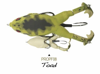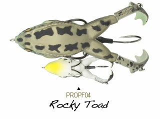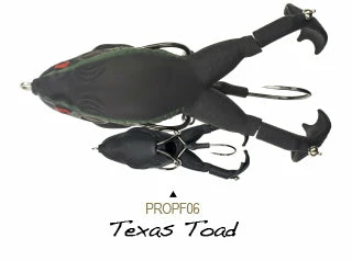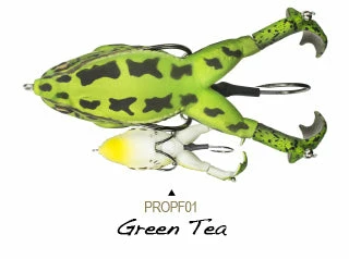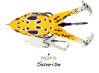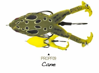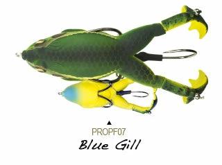 The Lunkerhunt Prop Frog adds a twist to frog fishing. Featuring double prop feet that churn the water and lure fish in from far away. The Prop Frog can get into the cover that other prop style baits cannot. The hook placement was specifically designed to deflect cover but grab fish. With a traditional frog-style hook tucked close to the body and another hook that sits in-between the prop feet, the hook-up ratio is great for this bait! Work this bait over pads, grass, mats, etc, and wait for the huge topwater strike. Topwater fishing is one of the best ways to fish, and the Prop Frog is sure to result in some amazing strikes. Available in a variety of colors and patterns so you can match your local frogs or toads.