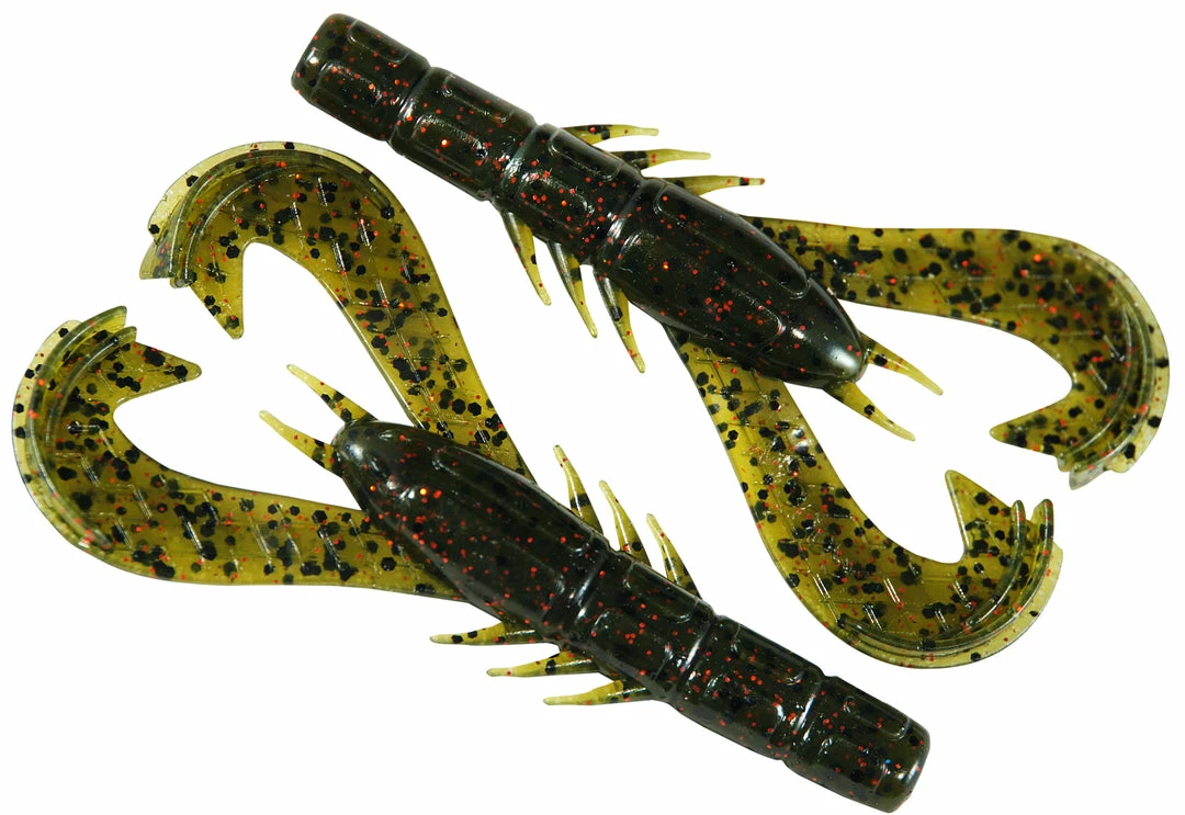 The realistic crawfish body shape and oversized pinchers of the Googan Baits 4″ Krackin’ Craw trigger trophy bass bites! The raised flanges on the pinches create a thumping action and powerful vibration that draws the fish in. The side legs never stand idol, even when the bait is not moving, to entice those shy bass to strike. Add the Krackin’ Craw as a spinnerbait for jig trailer, Texas-rig it, Carolina-rig it…the possibilities are truly endless. Googan ‘finished-off’ the Krackin’ Craw with their iconic Slaunch Sauce. The bass will be slobbering with that added level of attractant!