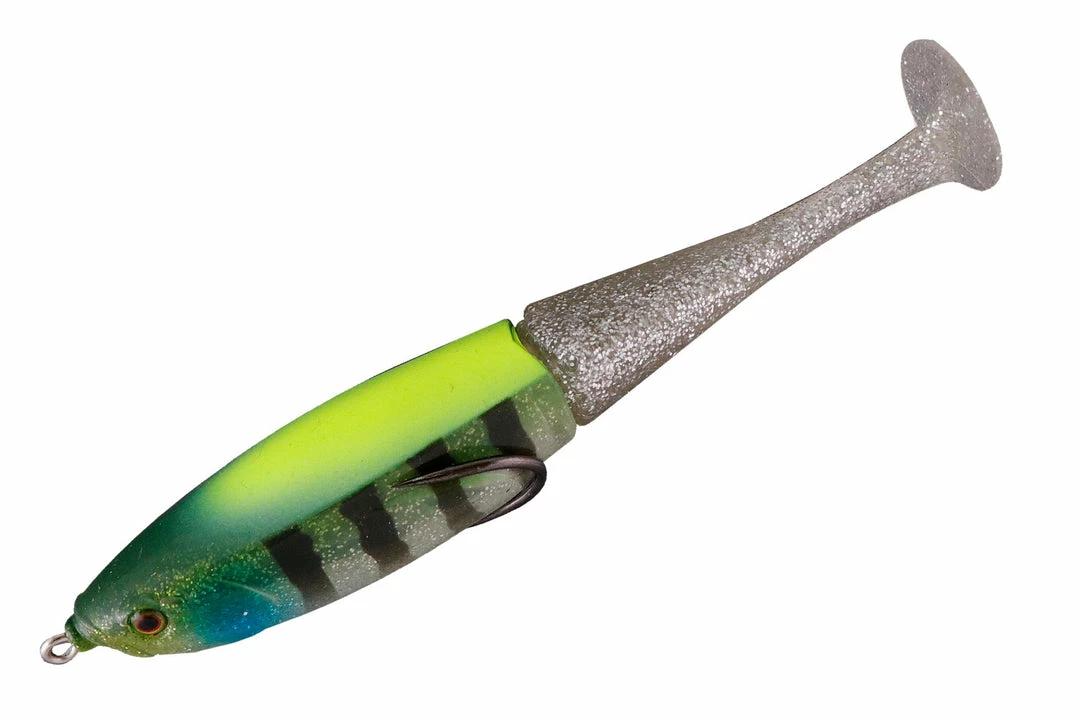 The Jackall Grinch is perfect for anyone that loves fishing topwater baits. While having a body similar to a frog and adding on an upside-down paddle tail, you get a creation like no other. The unique design of the upside-down paddle tail allows this bait to continue to kick hard under the water, even during a faster retrieve. This also allows continuous kicking movement while in heavy cover. The slender body mimics small baitfish, triggering the bass’s instinct to eat. When you are having a rough day on the water, this should be pulled out of your tackle box. The tail creates such a distinct sound that it will even attract fish that are far away.