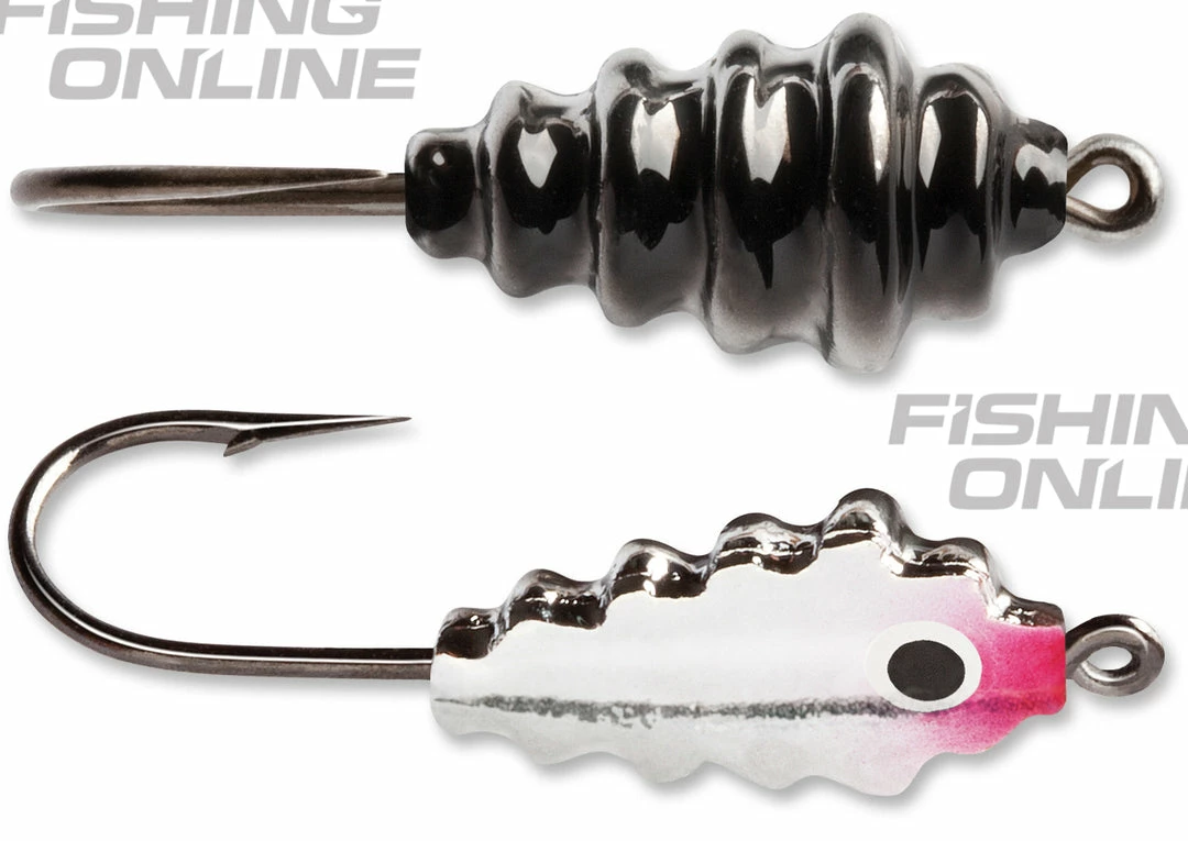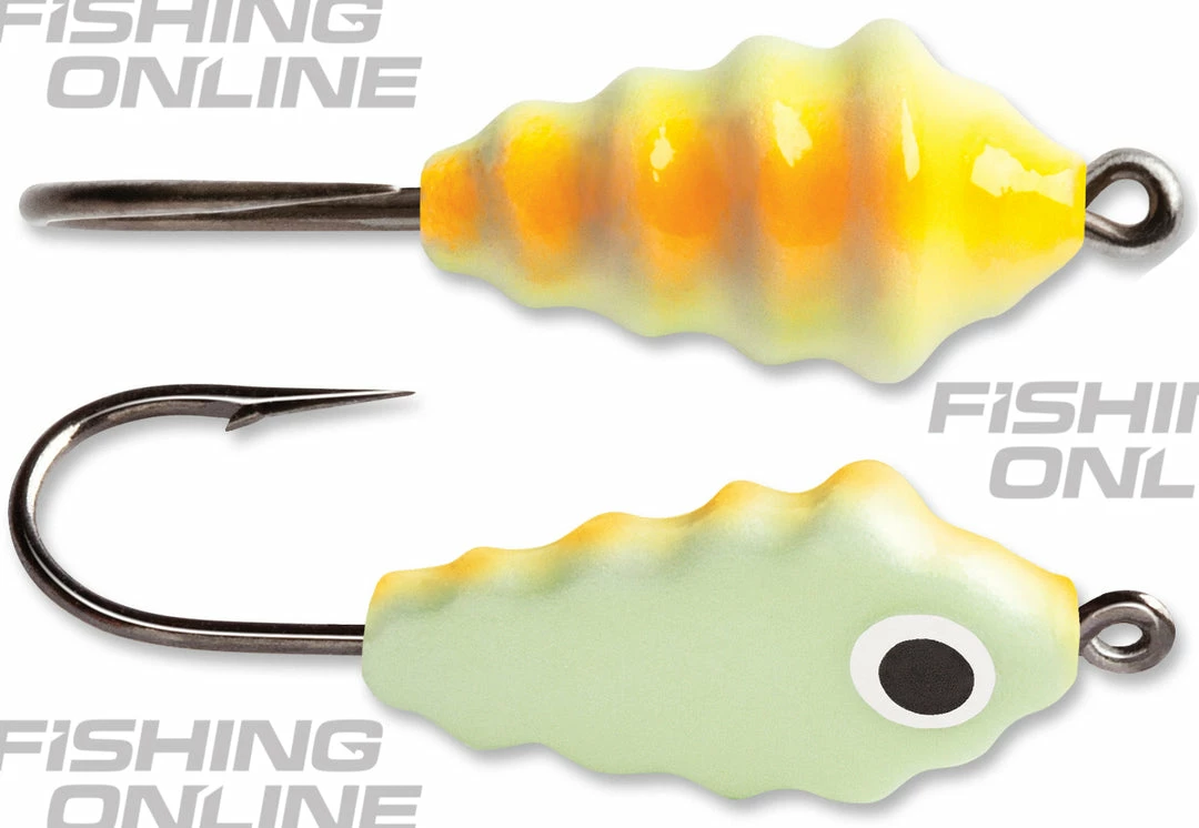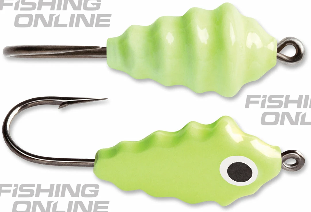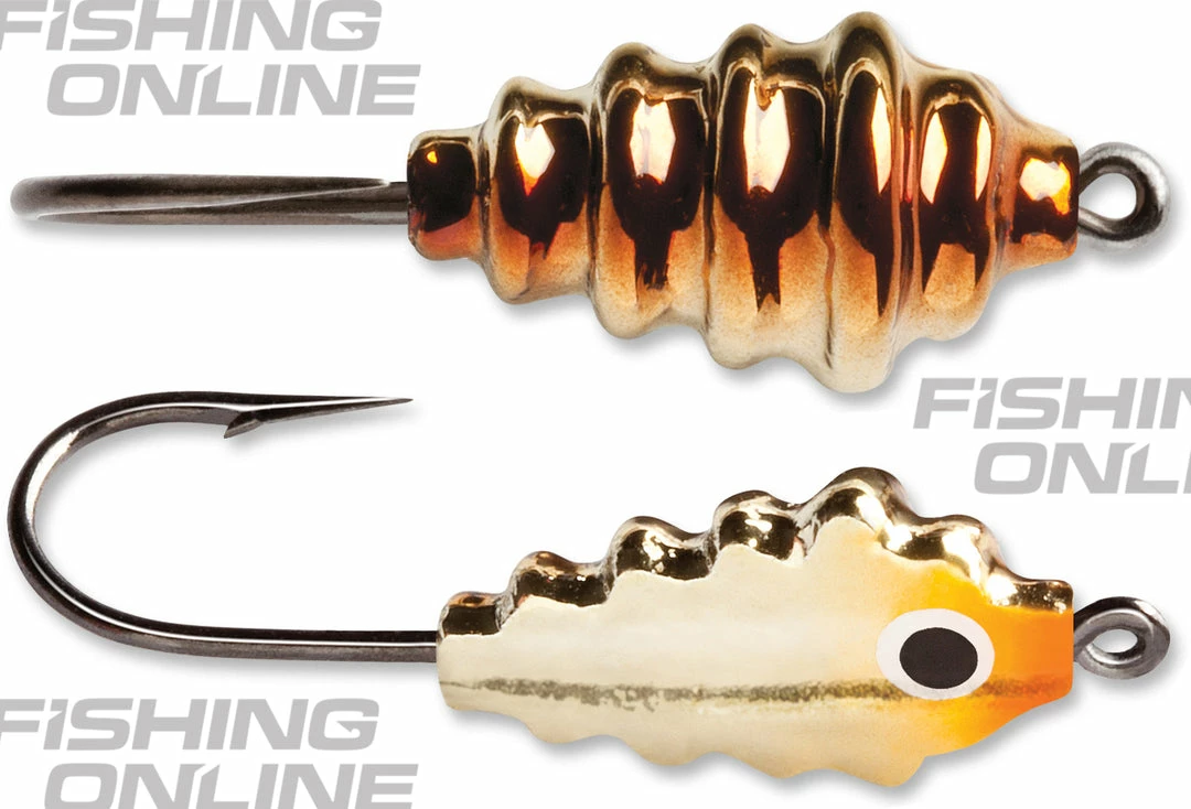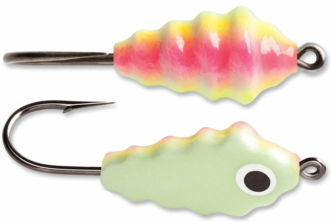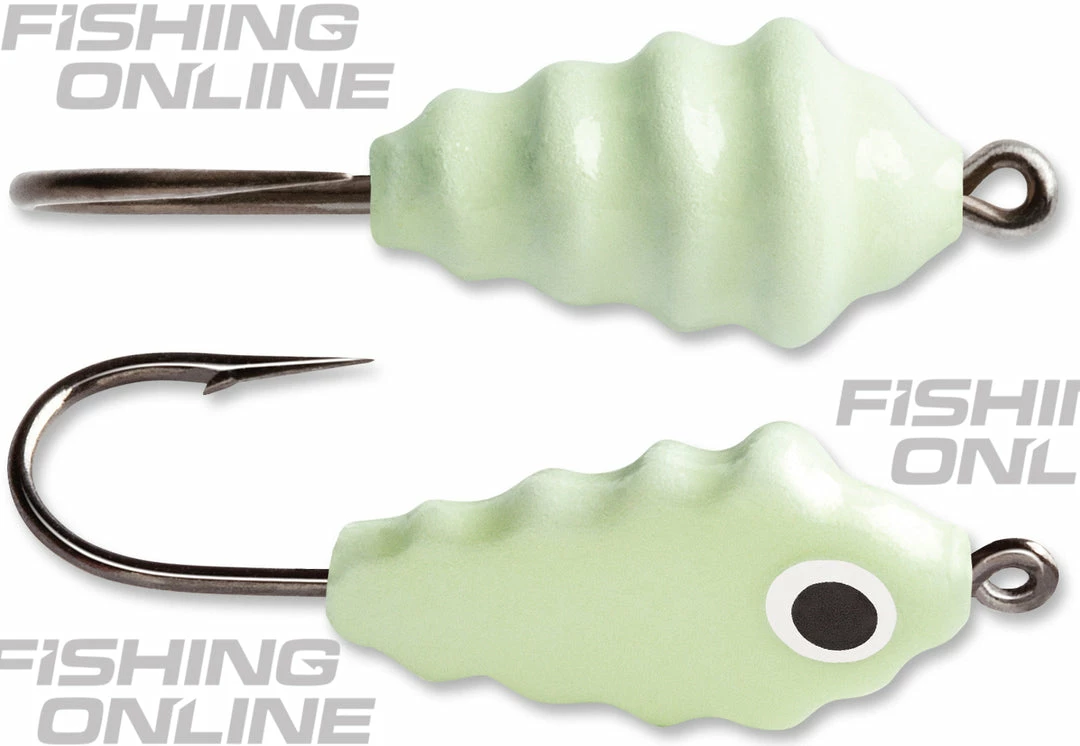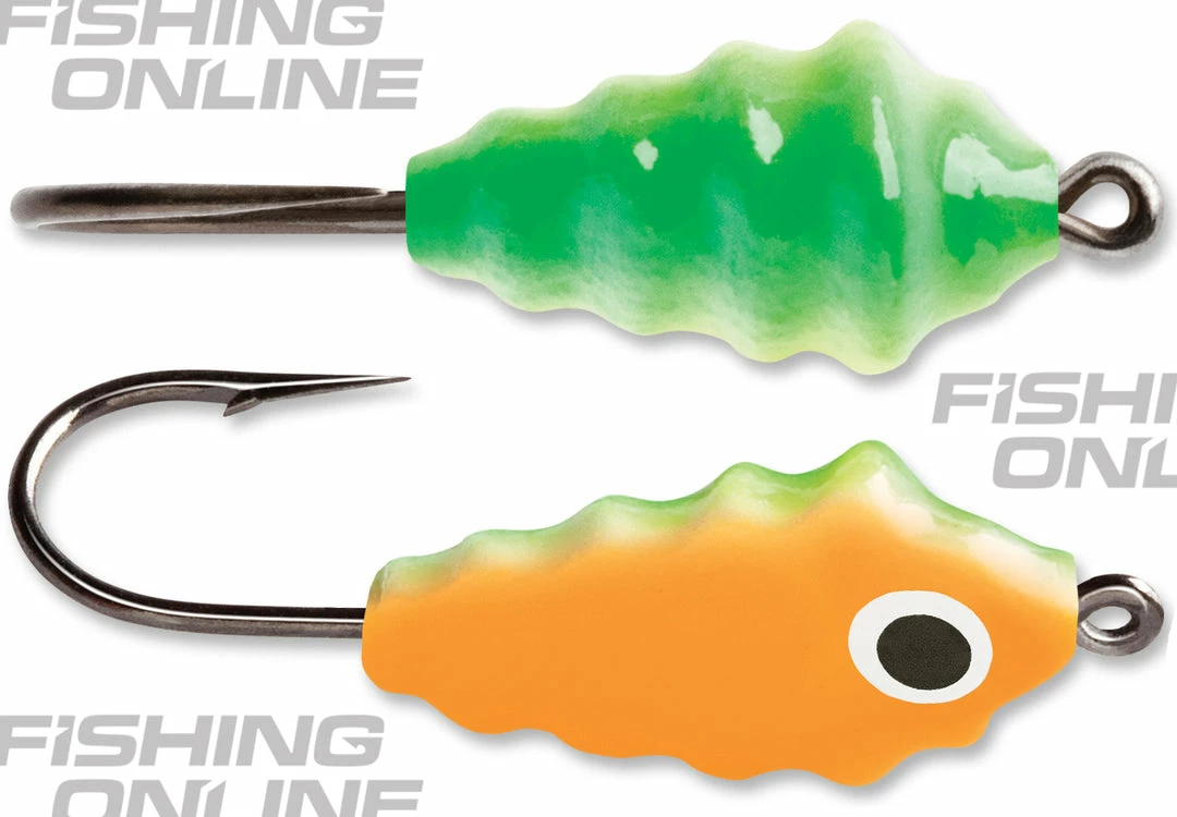 The vertical presentation of the VMC Pro Series Waxy Jig replicates the natural small insects and aquatic creatures preyed upon by cold water predatory fish. Raised body ridges gives the Waxy jigs a more life-like “bug” appearance and distribute contrast and flash more readily.