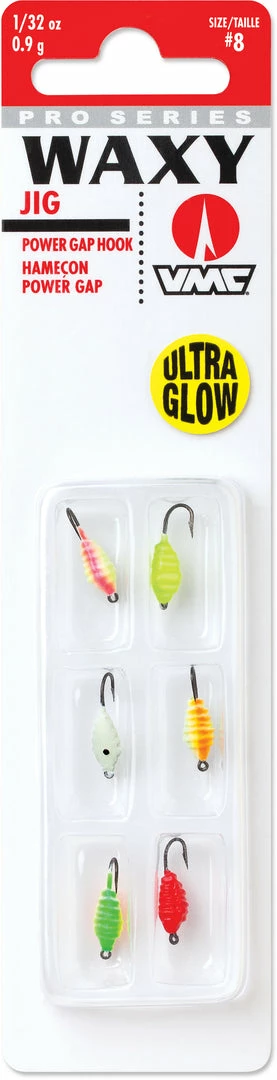 Colors are offered in a variety of metallic and Ultra Glow colors giving you up to a 15-minute charge. The Ultra Glow is available in: Green Orange Glow, Orange Chartreuse Glow, Pink Chartreuse Glow, Glow, Glow Chartreuse and Glow Red. Entice the icy predators that your hunting with the VMC Waxy Jig!…because fish just can’t resist!