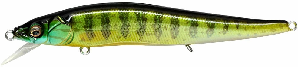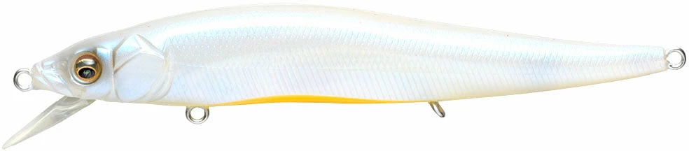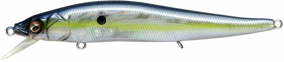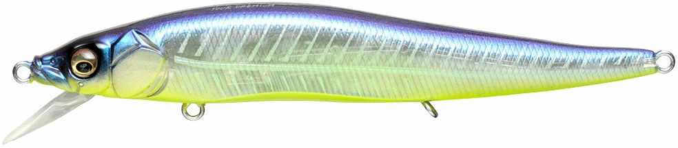 The Megabass Vision ONETEN FX Jerkbait is the tournament version of the wildly popular Vision ONETEN. This evolution of the popular jerkbait is sure to become your new favorite. Even in windy conditions, you can cast this lure farther than any other jerkbait. The design of the Variable Resistance Flap-Bill makes the lip tuck in during casts and opens as soon as it hits the water. The angle of the bill will vary based on the amount of water pressure, creating a unique action each time it enters the water. This lure will create the most action when used in a pattern of three hard jerks and then retrieve. This erratic behavior perfectly represents a distressed baitfish, making it an ideal target for bass. Since the bill moves, it also allows you to create a distraction under the water with the slightest movement of your rod. These new techniques are sure to grab the attention of bass wherever you throw it, making this your new go-to jerkbait!