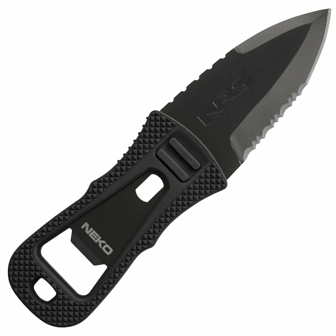 The NRS Neko knife is a compact, low-profile knife that features both smooth and serrated cutting edges so you can cut through a variety of materials. The pointed tip will pierce through most material, including rubber! The Neko Blunt Knife also has a squared hole that works to adjust the valves on oxygen tanks, perfect for any scuba divers! The bottle opener in the handle and contoured handle with rubber grip are just added bonuses to this knife’s convenience. Included with the Neko is a friction-release sheath that holds the knife securely while allowing for fast one-hand deployment and also attaches to a life jacket lash tab!