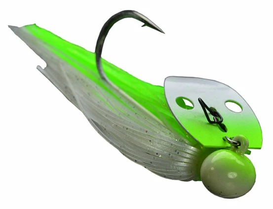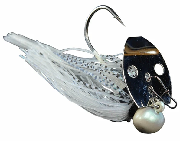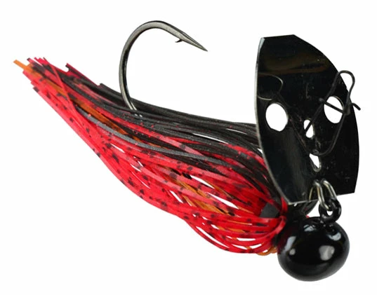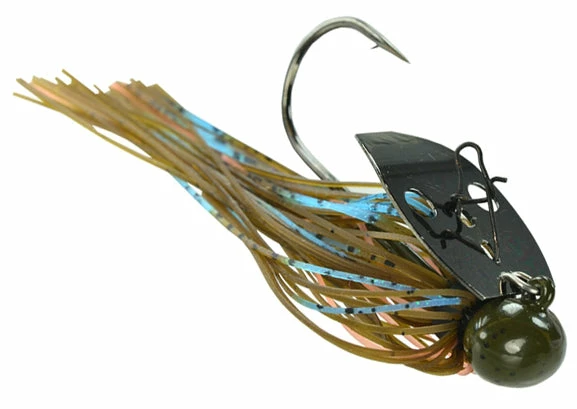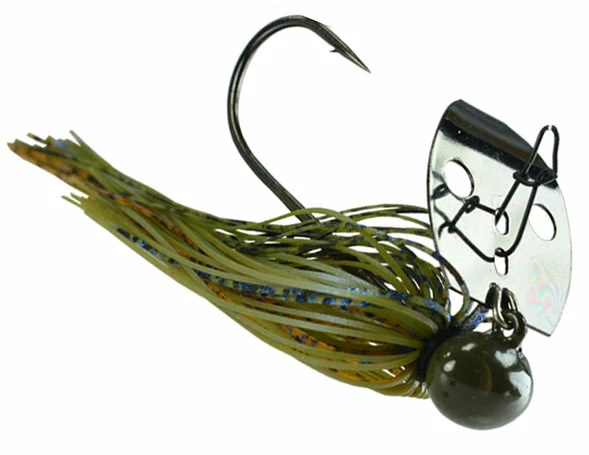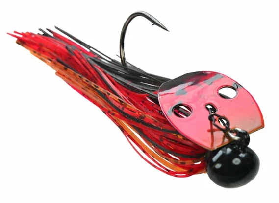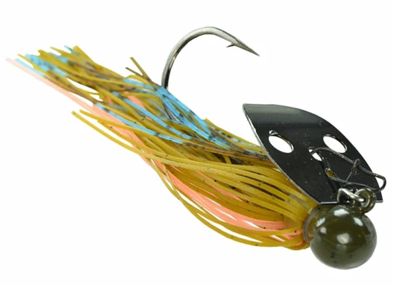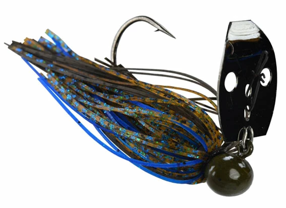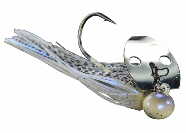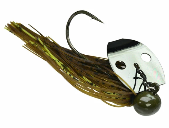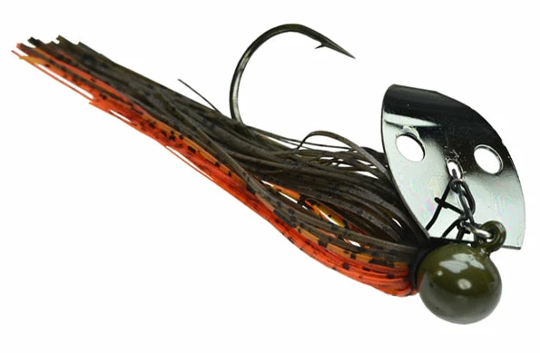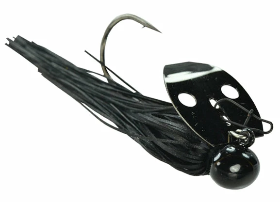 Referred to as the ‘Shock Blade on Steroids,’ the unique sound produced by the blade knocking the solid Tungsten head creates a sound and vibration that predator fish can’t resist! A small profile makes this jig ideal for targetting spotted bass, smallmouth bass, and largemouth bass. Whether you’re working it like a jig, or reeling it in like a spinnerbait, this jig is your golden ticket when fishing gravel banks, hard clay bottoms, rocky points, riprap, weeds, and off-shore humps and ledges!