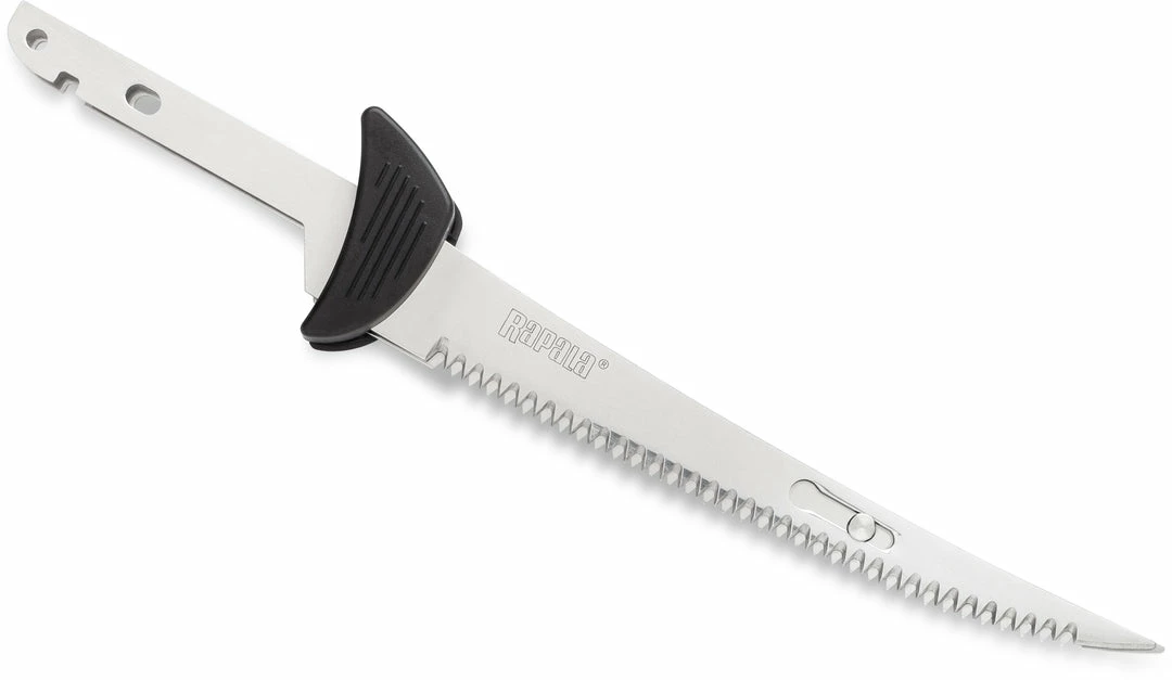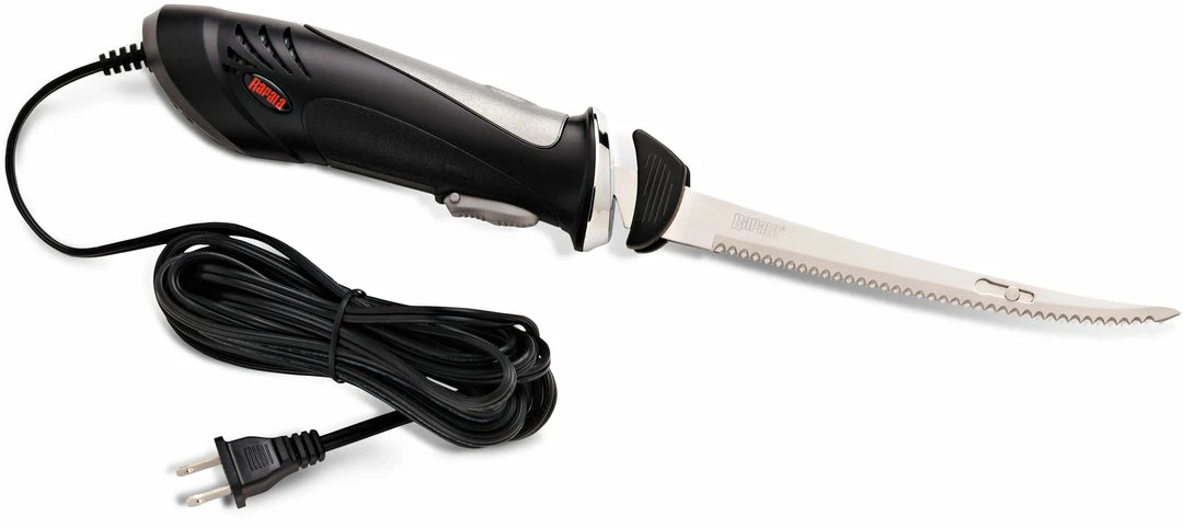 The Rapala 110V/AC Fillet Knife is a high-quality knife at an affordable price. This is perfect for keeping at home or at your cabin to ensure that you can always fillet your catches. This particular fillet knife is electric and has an 18-foot power cord that you plug into a 110V outlet. There are two blades on this knife to get the most precise cut with ease. One blade is 6″ and the other is 7.5″, and an advanced airflow design motor powers them. The relaxed grip design allows this knife to be used with as much comfort as possible, even with much fish to fillet. Once you are finished, and your knife is cleaned up, it will store nice and neat inside the travel case. This case is constructed from blow-molded plastic, so it will keep your stainless steel blades safe while also keeping out any unwanted small hands or dust and debris.