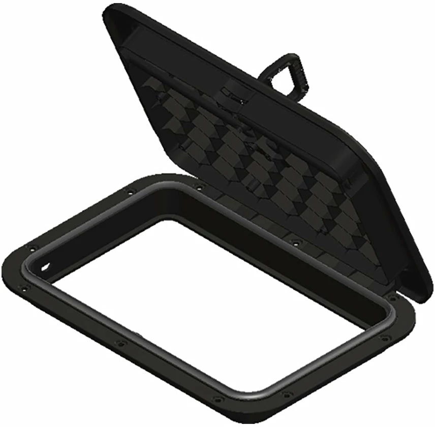The Triple Latch Deck Plate features a 3 point locking system to pull the lid into the gasket, creating a water-tight seal. Constructed with injection-molded polypropylene in a honeycomb lid, this deck plate is built to last. It also includes a full-length piano hinge for added strength and security.
