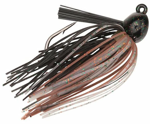 The Strike King Bitsy Flip Jig is ideal to be thrown in areas of heavy cover. The extra-strong weed guard and snagless, weedless head design makes this ideal to fight through grass and lily pads. Designed with an inverted line tie, this makes it easier to throw at banks and near docks because it protects the line from fraying on jagged rocks. While the sound of the bait hitting the water and the movement of the premium silicone skirt is what gets the attention of the fish, the heavy-duty Mustad hook is what seals the deal when you get the bite.
