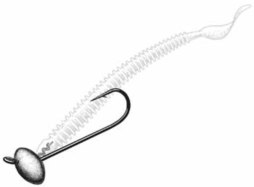 Owner Shaky Football Head Hooks feature the patented CPS “Center Pin Spring.” The football-shaped head is contoured on the bottom to establish a rocking motion in the plane of the hook, which will promote an up and down movement.
