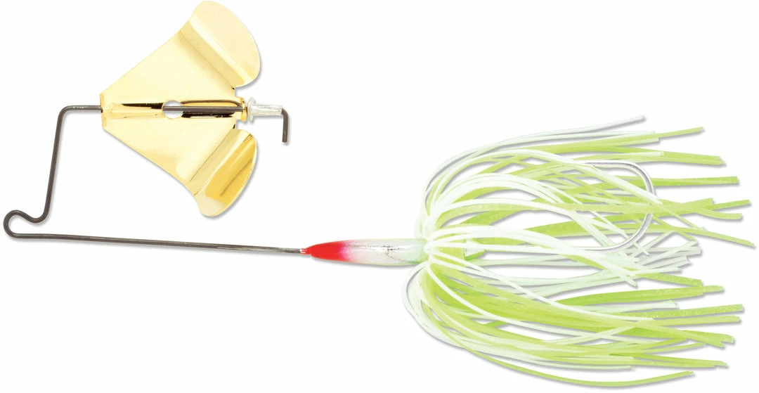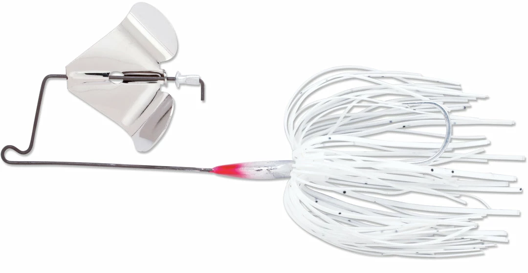 The Terminator Super Stainless Buzzbaits flat head design allows the buzzbait to get on top of the water quickly, like a water skier, and stay on the surface even at very slow retrieve speeds. This buzzbait’s Super Stainless frame is 30% more resistant to bending than ordinary stainless-framed buzzbaits, offering topwater enthusiasts a tougher, more maintenance-free buzzbait.