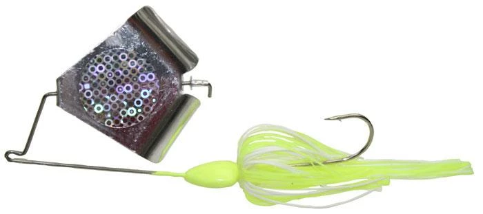 The War Eagle Lures Buzzbait is known for its ability to rise to the surface and get on plane quickly. This is in part due to its specially designed flat keel head. Once on top of the water the blades buzz turning up the water and creating a squeaking noise and bubble trail that instigates fish into striking. They also feature a light wire frame and slip-on skirts so you can change skirts or easily remove it. On days when the wind is blowing hard, anglers often remove the skirt from their buzzbait and add a trailer like a grub or swimbait so it catches less wind when casting. The War Eagle Buzzbait also feature a super sharp Mustad Ultra Point Power Hook.