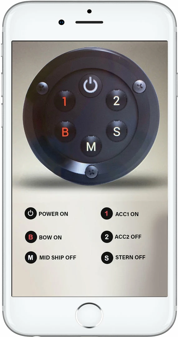 - 5 button remote: bow, mid-ship, stern, ACC 1, ACC 2