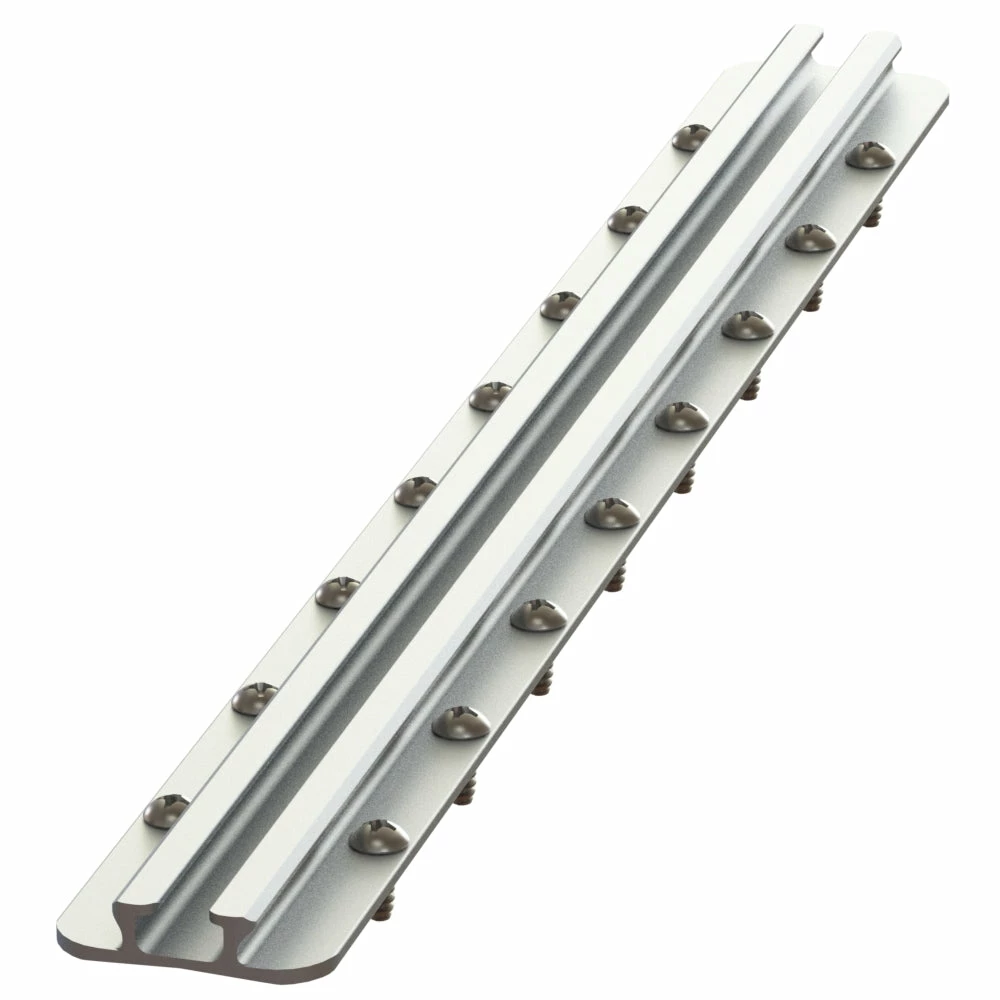 - The track is pre-drilled with 1-5/16″ wide X 1-3/4″ long holes