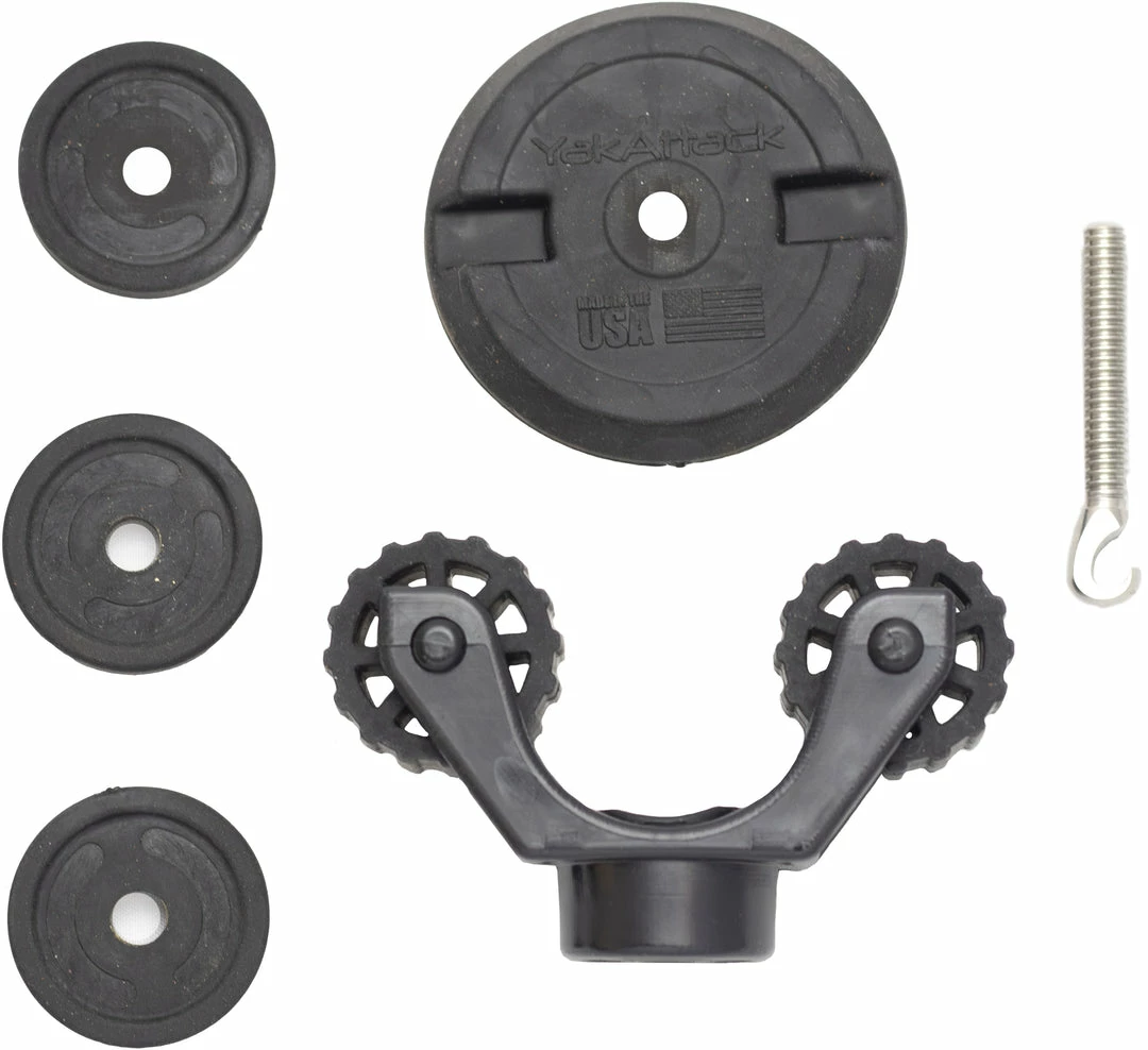 Included with this kit are three black spacers. The spacers are used to adjust the height of the paddle so the j-hook doesn’t come in contact with your paddle shaft. Start out using one spacer and tighten till snug. If the top of the metal j-hook comes in contact with your paddle shaft, add a second spacer. Do not over-tighten.
