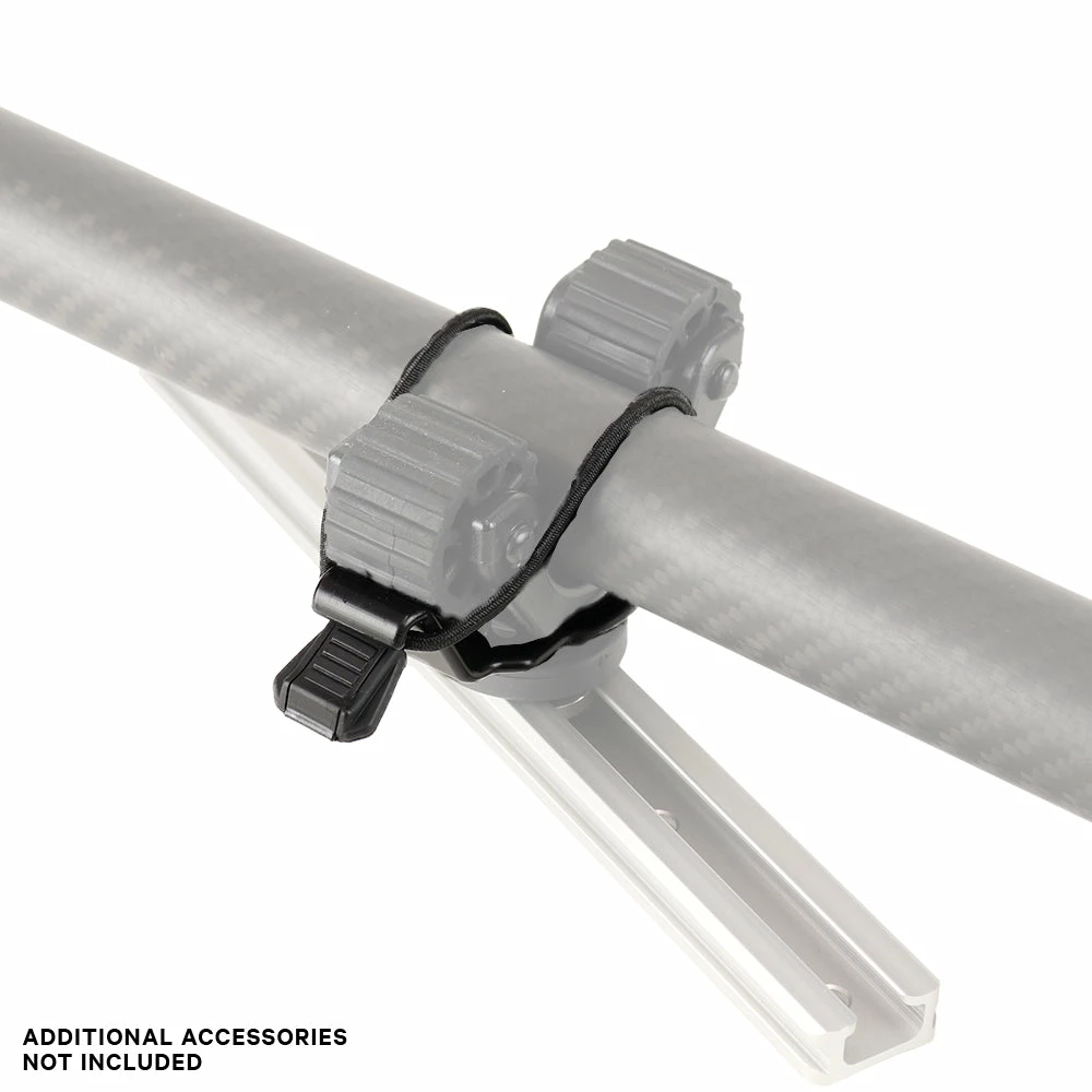 The YakAttack RotoGrip SnapNStrap Security Tether was specifically designed for the YakAttack RotoGrip Paddle Holder; it comes with 2 per pack, and the RotoGrips are not included. It acts as a simple hook and loop system using a bungee to add extra security and peace of mind knowing your paddle is safe and secure. To attach the SnapNStrap system, remove the rubber washer and MightyBolt from your RotoGrip and slide on the molded frame with the two tabs facing upwards. Apply a little pressure, and the system will snap in place. From there, reassemble the washer and MightyBolt. To secure your paddle, wrap the bungee and pull tab over your paddle’s shaft and loop it over the tab of the SnapNStrap frame.