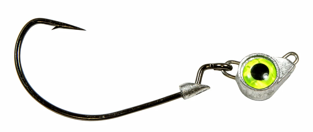 Experience the double-threat of the Z-Man Texas Eye Jigheads! With an oversized 3D eye that creates a target for gamefish and a swinging hook that allows for easy weedless rigging, the Texas Eye gives you an edge that you’ve never had before. The flat sided head and upturned line tie eyelet easily shed grass and prevents snagging and a molded bait keeper prevents baits from sliding down the hook shank. The jig maintains a stable spoon-like swimming action when paired with a paddle-tail or straight-tail bait. A heavy-duty construction makes the Texas Eye ideal for both fresh and saltwater application, for pitching baits, to laydowns for trophy bass! Try pairing the Texas Eye Jighead with a MinnowZ or a TRD MinnowZ for the perfect combination!